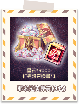 | SR禮物寶箱*3 | SSR禮物寶箱*1。 |
