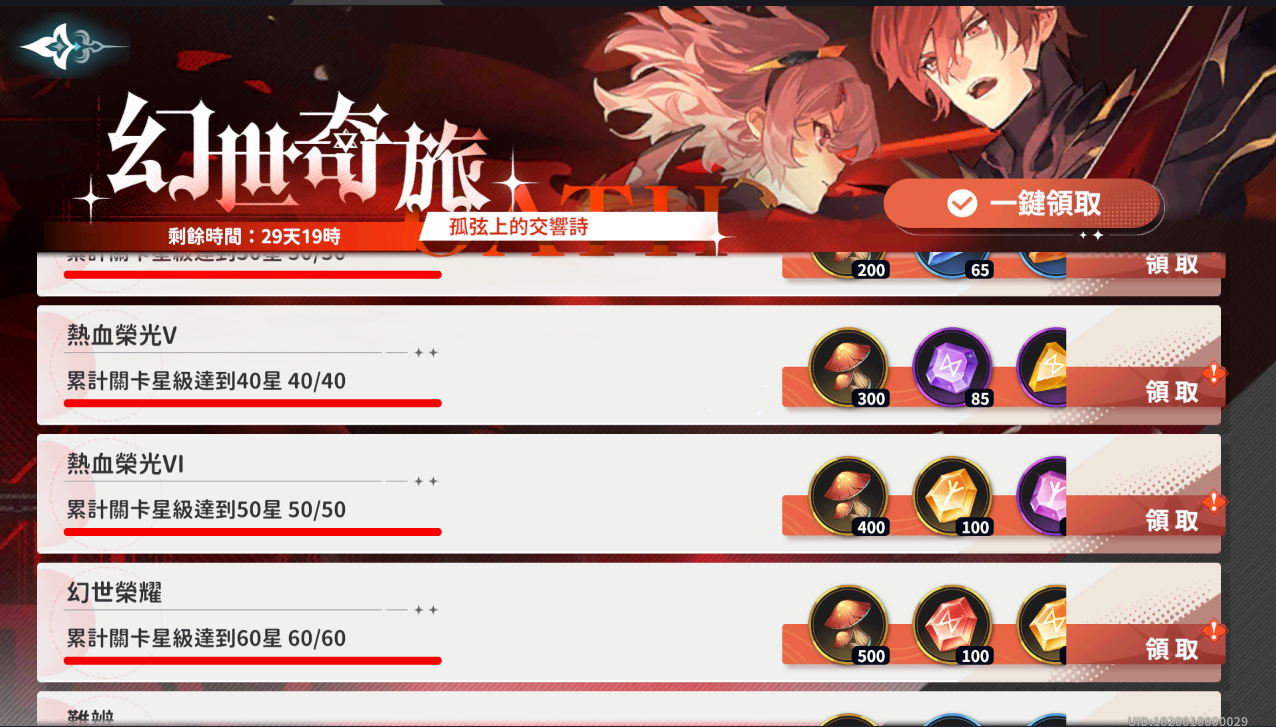 幻世榮耀:累計關卡星級達到60星 |
